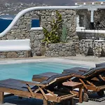 تقع على بعد 25 دقائق سيراً من المتحف الأثري في ميكونوس في مدينة Mykonos Town، Patron 1 & 2 Pool Sunset Villas- Seven Bedrooms & Five Bedrooms توفر إقامة مع المطبخ كامل التجهيز. في الموقع الوسائل الترفيهية تتضمن المنطقة للتشمُّس والشرفة والفناء وكذلك حوض السباحة في الهواء الطلق.